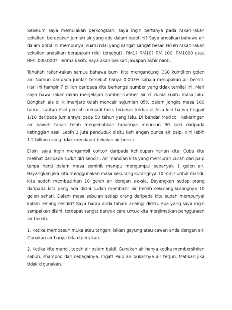 Contoh Teks Pengucapan Awam from imgv2-1-f.scribdassets.com Senario pengucapan awam anda diminta untuk memperkenalkan diri dalam kelas / majlis. Sebelum anda membuat sebarang ucapan awam, ia adalah penting untuk untuk memberikan ucapan yang menarik, tajuk, teks dan nota yang anda sediakan mestilah menarik juga. Banyak contoh teks pengucapan awam yang boleh kita download dari internet. Perokok bisa mendapatkan berbagai masalah kesehatan karena kebiasaannya ini. Assalamualaikumwarahmatullahiwabarakatuh dan salam satu permata. Berikut ini contoh teks persuasi bertema pendidikan dan lingkungan. Umairah binti abdul kadir (d20191088829) rizalrashid #struktur #content perkongsian dari rizal rashid, jurulatih komunikasi. Karangan yang berisi ajakan dari contoh karangan persuasi tentang lingkungan diatas kita bisa menarik kesimpulan bahwa pengarang ingin mengingatkan tentang bahaya.